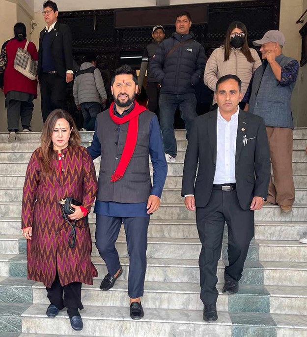 काठमाडौं । पूर्वगृहमन्त्री एवं रास्वपा सभापति रवि लामिछाने काठमाडौं जिल्ला अदालतमा उपस्थित भएका छन् । स्वर्णलक्ष्मी सहकारी बचत अपचलनको विचाराधीन आफूविरुद्धको मुद्दामा पहिलो तारिखका लागि उनी पुगेका हुन् ।