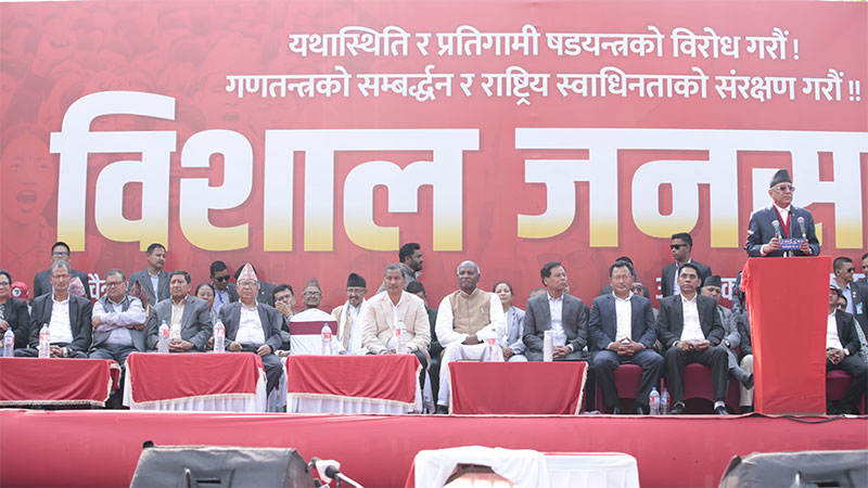 नेपाल कम्युनिष्ट पार्टीका महासचिव नेत्रविक्रम चन्दले जनताको सङ्घर्षको बलमा परास्त भएका शक्ति फेरि जुर्मुराउने प्रयास गरिरहेको उल्लेख गर्दै सङ्घीय लोकतान्त्रिक गणतन्त्रबाट पछाडि फर्कने विषय कुनै हालतमा स्वीकार्य नभएको बताउनुभयो । “जनतालाई सामन्ती व्यवस्थाको खाँचो छैन, फेरि पनि जनतालाई उत्पीडनमा पर्न दिँदैनाँै”, उहाँले भन्नुभयो, “अबको यात्रा पश्चगमन नभई अग्रगमन हो ।”