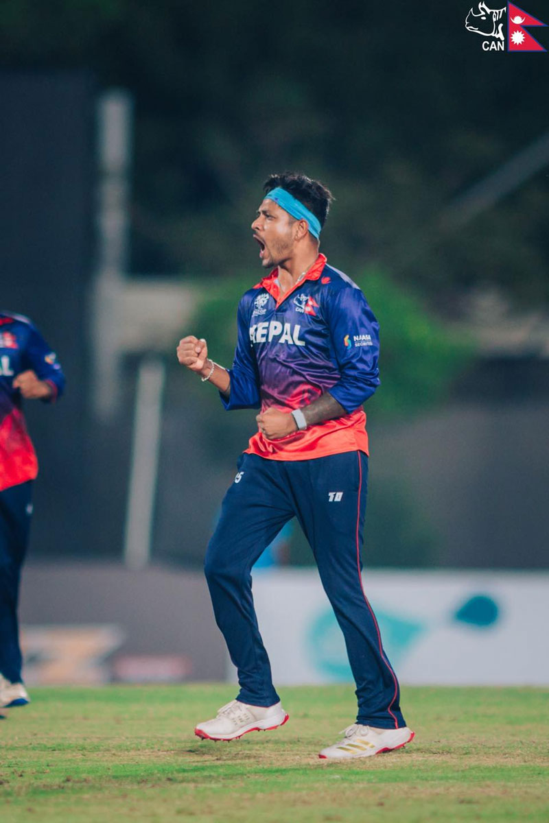 नेपालको जितमा सन्दीप लामिछाने नायक बने । उनले ५ विकेट लिए ।