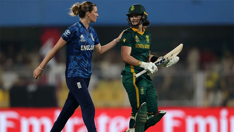 आइसीसी महिला एक दिवसीय विश्वकप क्रिकेटमा दक्षिण अफ्रिका फाइनलमा प्रवेश गरेको छ । बुधबार राति सकिएको खेलमा दक्षिण अफ्रिकाले इंग्ल्याण्डलाई १२५ रनले पराजित गर्दै फाइनलमा स्थान बनाएको हो । गुवाहाटीको बार्सापरा क्रिकेट स्टेडियममा खेलिएको खेलमा कप्तान लौरा वोल्वार्डको शानदार शतकको मद्दतले दक्षिण अफ्रिकाले ५० ओभरमा ७ विकेट गुमाउँदै ३१९ रन बनाएको थियो । जवाफमा, इङ्ल्यान्ड ४२.३ ओभरमा १९४ रनमा मात्र अलआउट भयो ।