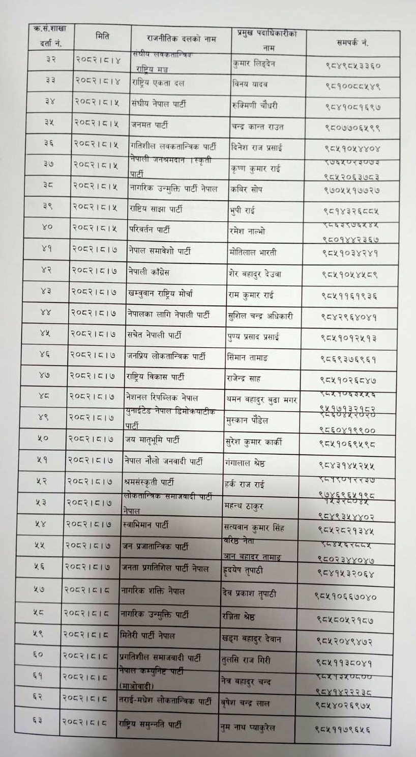 आयोगले सोमबार राति ६४ दलको विवरण सार्वजनिक गरेको हो ।